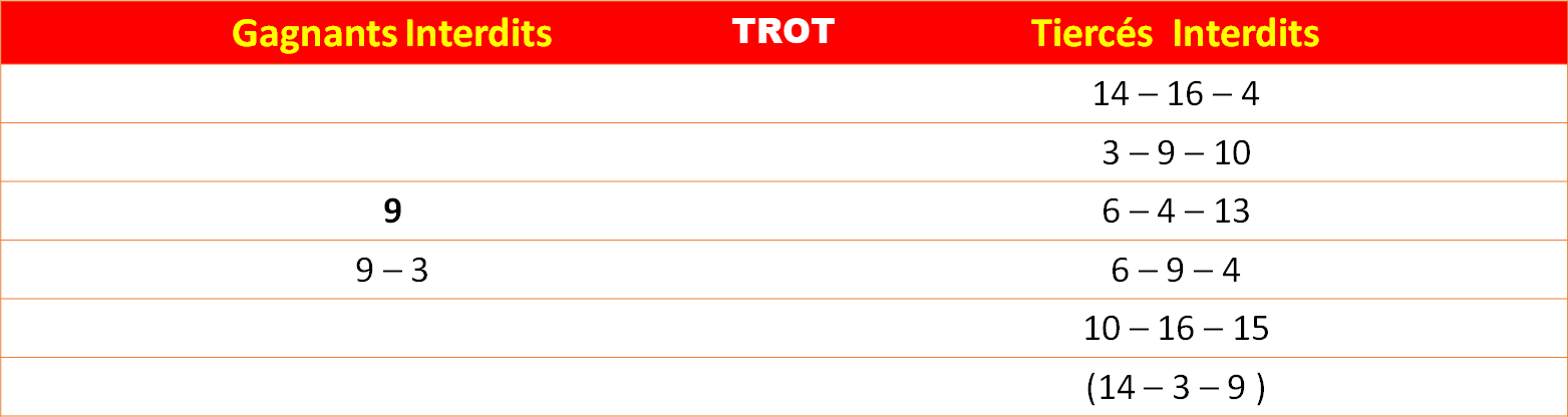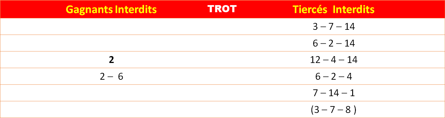 Si l'une des Bases figure dans "Le Gagnant Improbable", sentez-vous livre de ne pas la jouer. Et si vous avez une ou deux bonnes bases tiercé, utilisez ceci comme "associés" car leur réussite au tiercé n'est plus à démontrer.