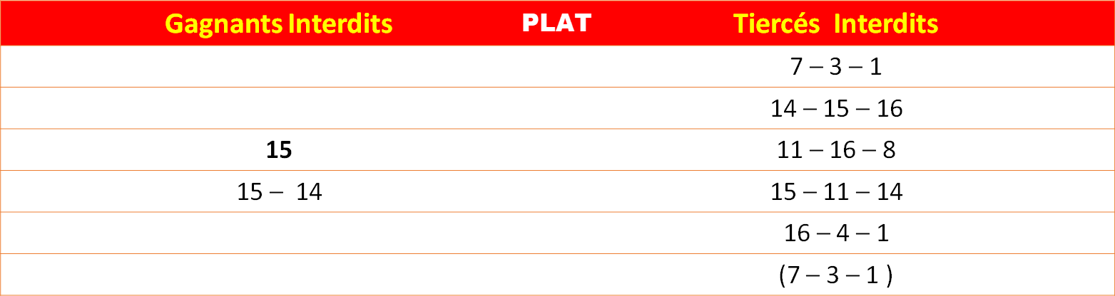 Les jours où mes infos habituelles d'analyse des courses ne seront pas disponibles, j'utiliserai ce type de format en guise de pronostic Quinté. Merci pour votre compréhension.