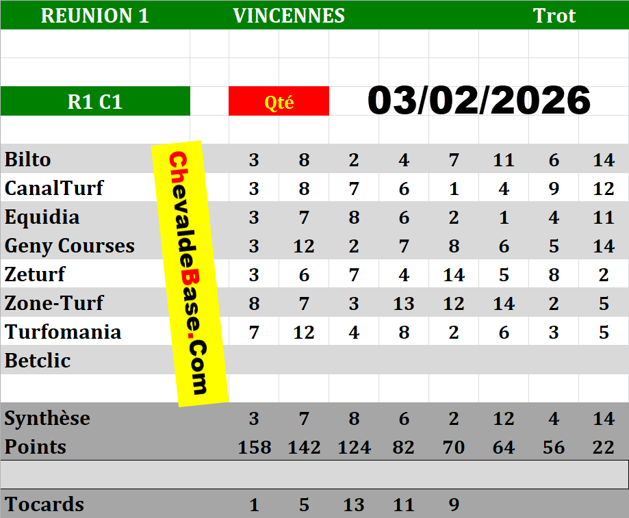 NB : les synthèses ne sont habituellement générées qu'après récolte de tous les pronostics de la presse hippique...