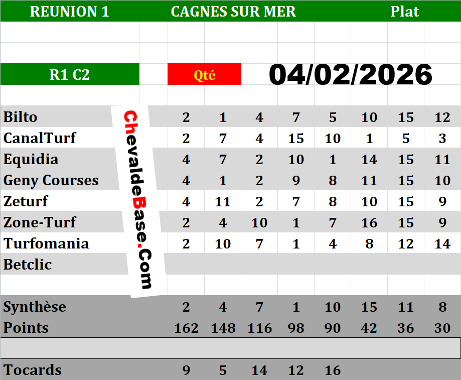 Petites exceptions les jours de Nocturnes où ils sont régulièrement actualisés entre 10 et 12 heures GMT...Pronostic Quinté de MERCREDI 04/02/2026 | Bases |