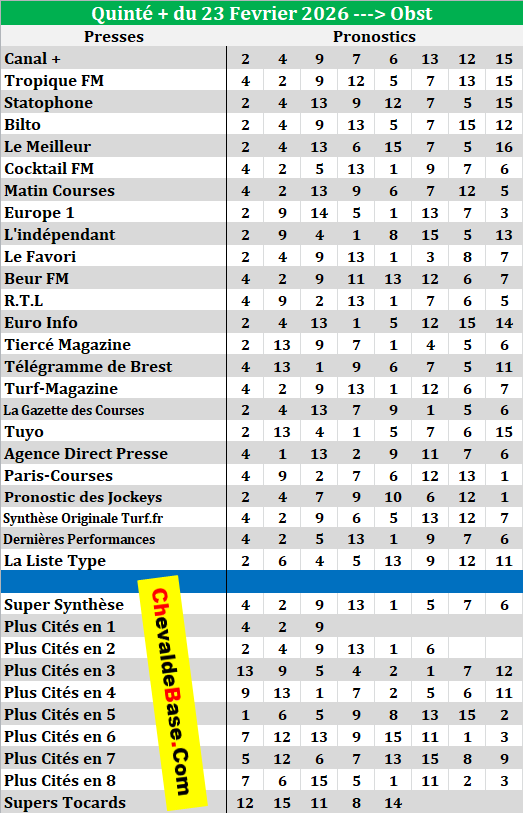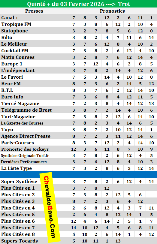 Pronostics, Synthèses et les Plus Cités de la Presse Hippique