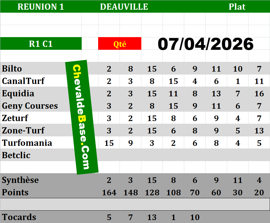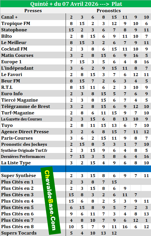 Petites exceptions les jours de Nocturnes où ils sont régulièrement actualisés entre 10 et 12 heures GMT...Pronostic Quinté de MARDI 07/04/2026 | Bases |