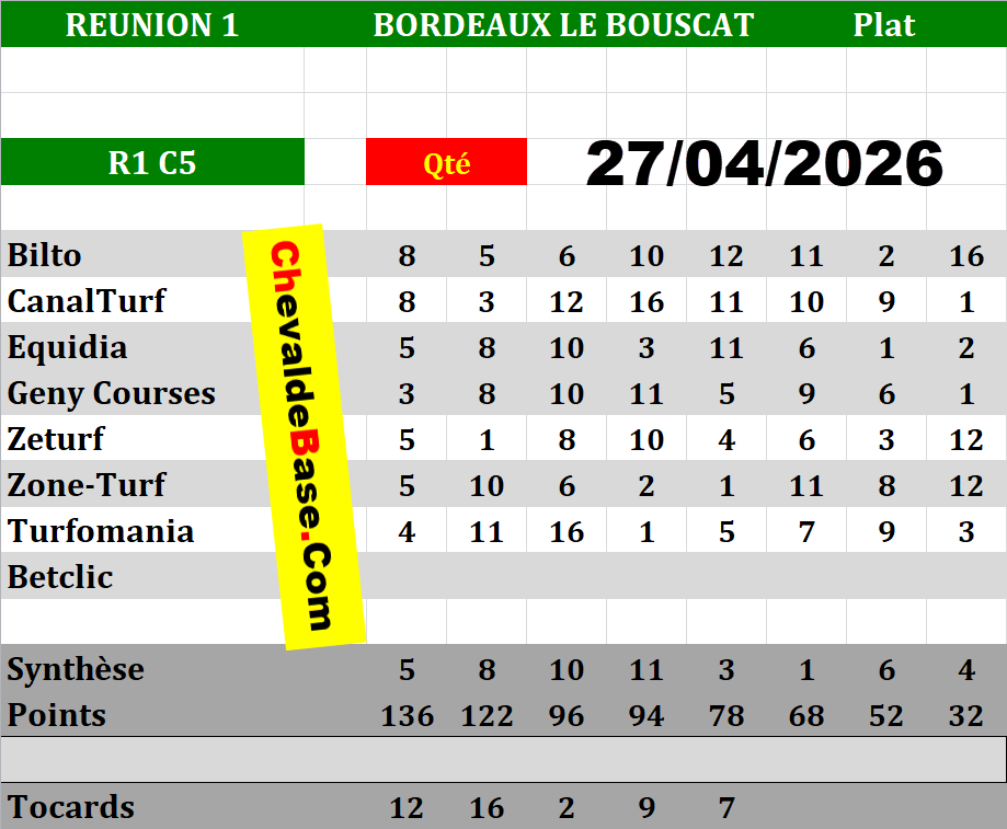 Parce que suivant le type de course, il faudra peut-être aller voir du côté des favoris, des outsiders ou des tocards. Dans tous les cas, avoir plusieurs types de synthèses sera un bel atout quand viendra le moment de tester vos bases quinté.