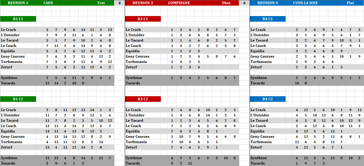 Toutes les synthèses de la presse de la Réunion 1 (Quinté Course 1, course 2, course 3 ou course 4 comprises), de la Réunion 2, de la Réunion 3, de la Réunion 4 et /ou de la Réunion 5 du jour vous attendent ci-dessous. Oui, y compris celles de toutes les courses supports Quinté...